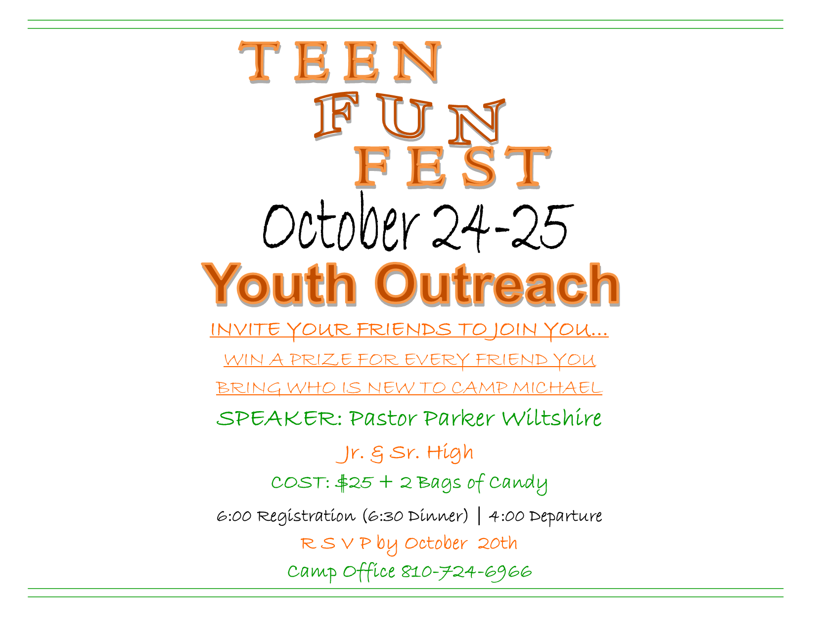 Camper, you can earn your way to camp by participating in the Camp Michael Walk-A-Thon. You have the opportunity to raise your camp fee entirely or partially, by collecting pledges for your 4-mile walk around camp. The amount of money you earn determines how much money you will have left to pay for your week of camp. GOAL - Sr. High $205; Jr. High & Junior $180; Primary $95.